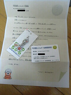 おいらもこれで、宇宙電気エネルギー防衛隊の隊員だぜ!