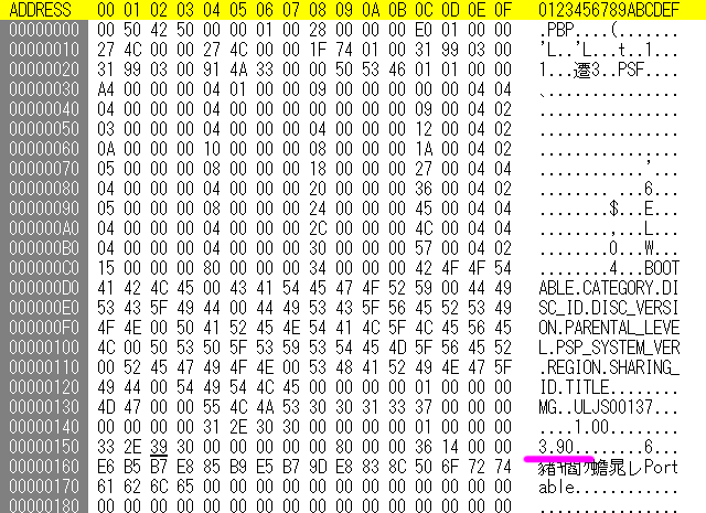 ちうわけで、バイナリエディタで、上記のファイルを開きまして